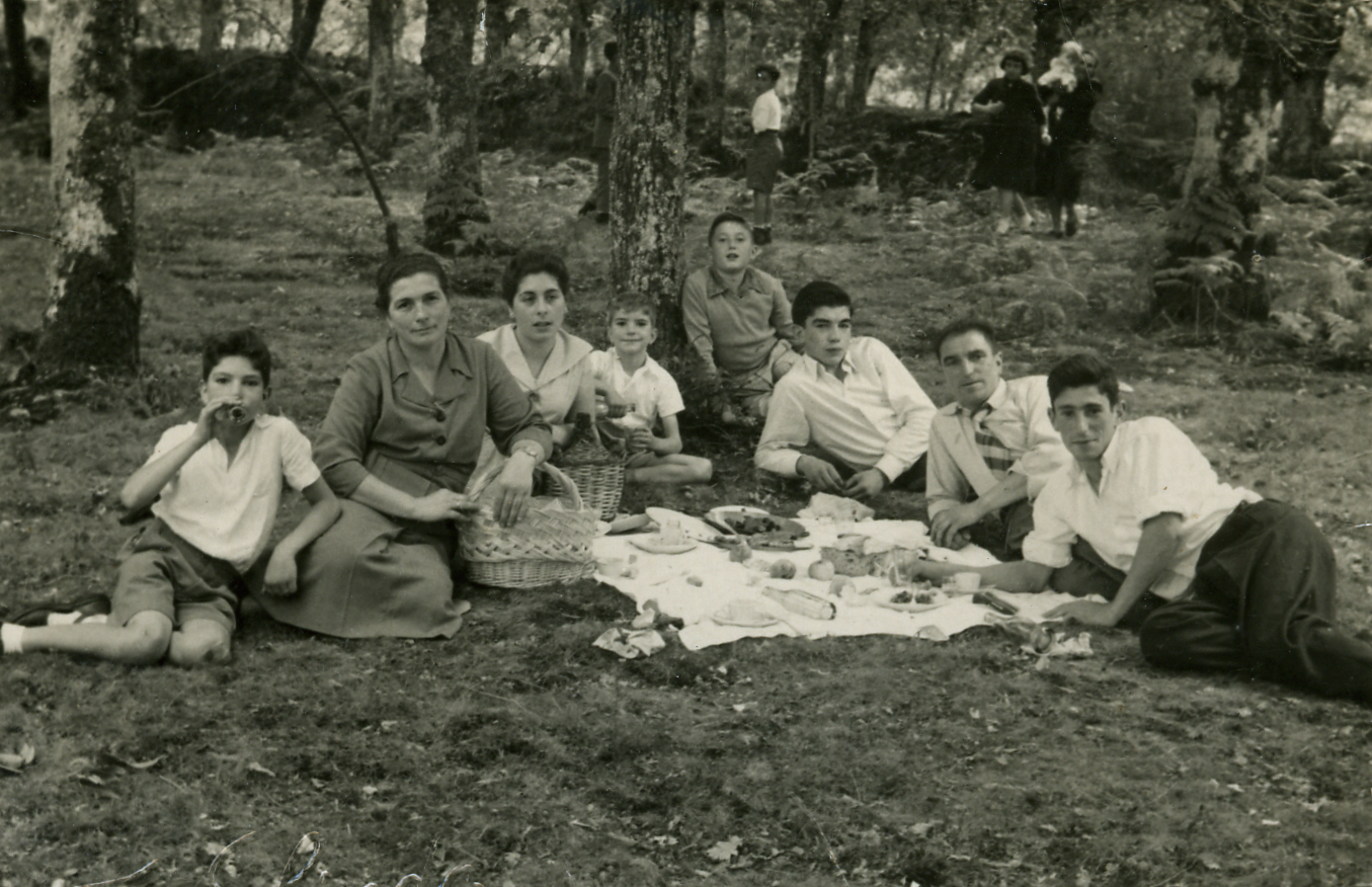 | Estampa familiar na romaría do San Verísimo (anos 1950) / Cedida por Perfecto Pereiro Lázara. |
